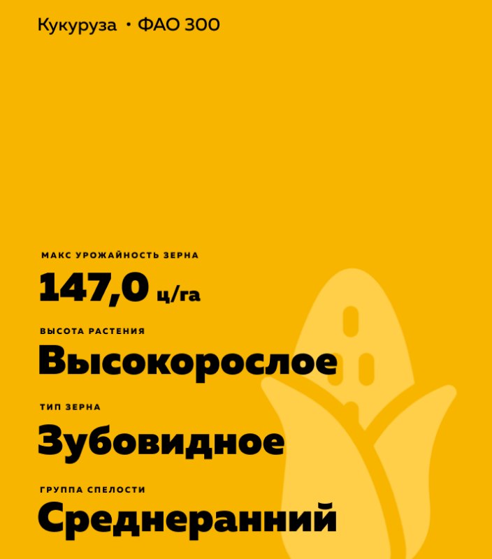 СИ Озон- гибрид кукурузы ( Zea mays L.). Среднеранний. ФАО (300). Высокая натура зерна.