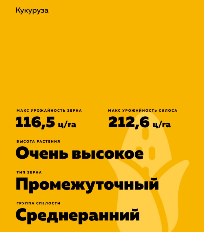 - По данным оригинатора: потенциал урожайности: зерно – до 130 ц/га, силос– до 600 ц/га.
