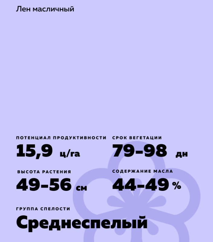 | Масса 1000 семян | 5.7-7.7 грамм |
