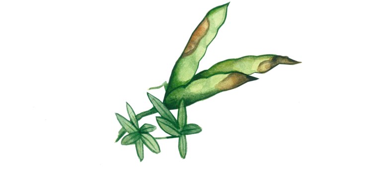 🟡На узколистном люпине симптомы поражения антракнозом в основном наблюдаются в фазы всходов и образования бобов. На других этапах развития растений отмечены лишь единичные случаи поражения черешков и стеблей. На всходах образуется серая водянистая перетяжка на стебле, которая приводит к гибели растений. На бобах симптомы не отличаются от проявления болезни на белом и желтом люпинах.