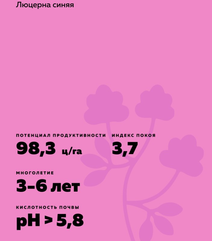 Medicago sativa L. subsp. sativa). Индекс покоя 3,7. Многолетие: 4 года и более. Использование: сено, силос, сенаж.