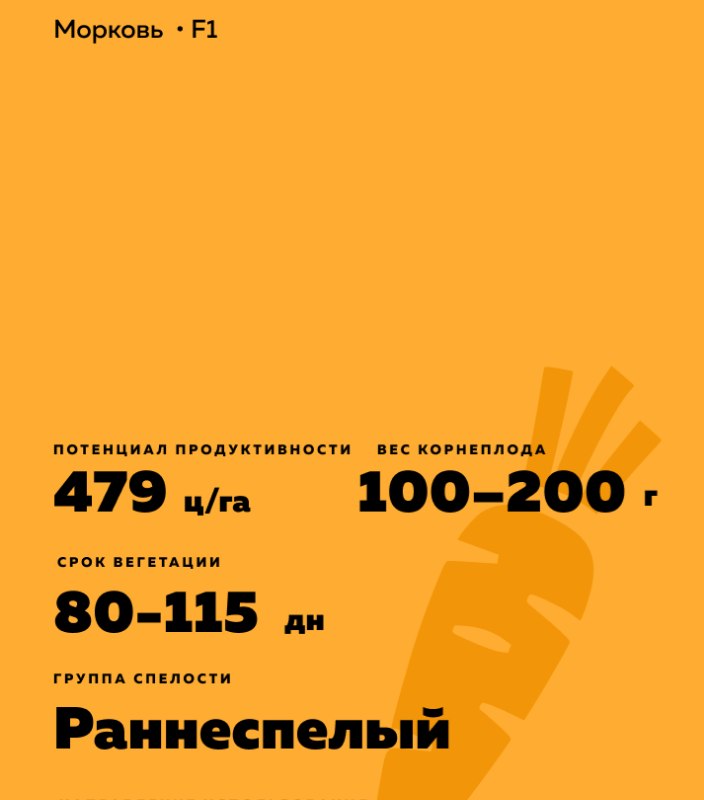 - Корнеплод хорошо выполненный, конический, короткий. Окраска ярко-оранжевая. Сердцевина слабо выраженная. Корнеплод почти полностью погружен в землю без образования зеленого пятна на корневой шейке.