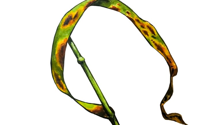 Мицелий в семени поражает проросток, иногда растения погибают до появления всходов. Или на первых листьях появляются некротические продольные полосы. Зараженные молодые растения тормозят развитие, листья часто скручиваются и остаются короткими