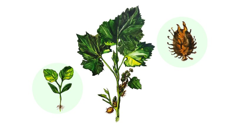 🔷 Стебель прямостоячий, ветвистый, жесткий, неравномерно-ребристый стеблем с коротким опушением. Листья черешковые сердцевидные трех-пятилопастные неравно крупно зубчатые, с обеих сторон с тонкими прижатыми волосками или с щетинистым опушением.
