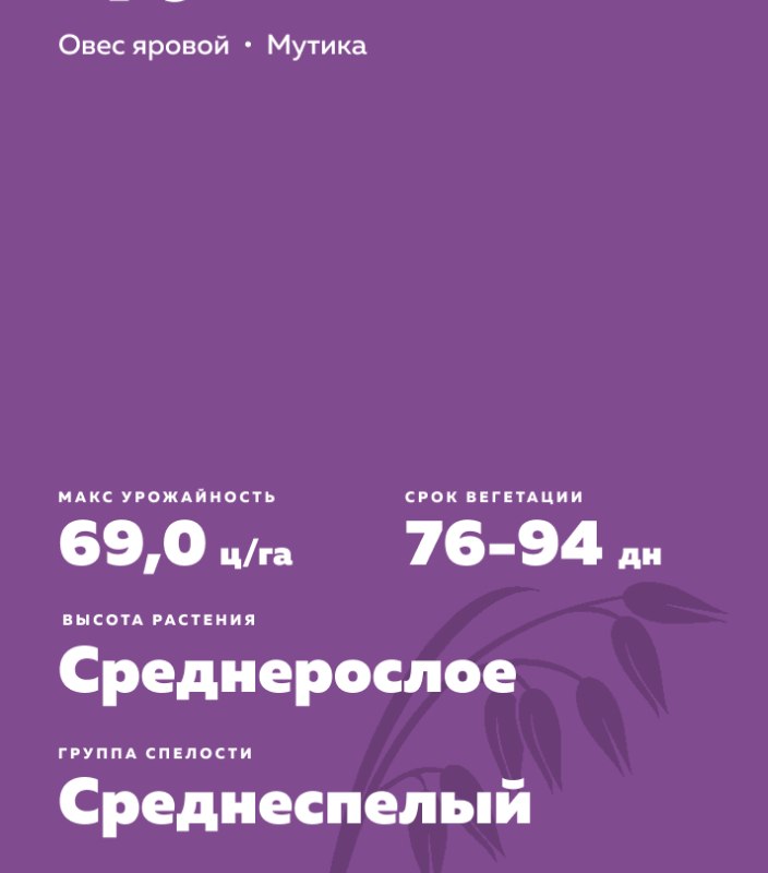 Грум ® - сорт овса ярового (Avena sativa L.). Среднеспелый. Направление использования на зернофураж и зелёную массу.