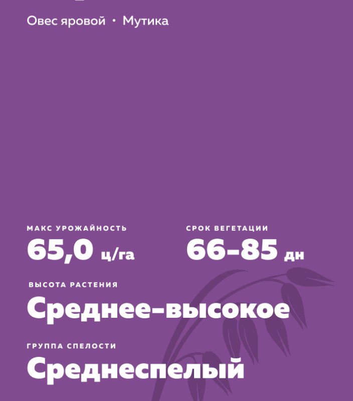 - Максимальная урожайность 65,0 ц/га получена в Новосибирской области. Зернофуражный. Содержание белка 10,8-14,8%. Натура зерна 440-520 г/л. Качество зерна по данным оригинатора: за 2015-2018 гг.: 10,75% белка (от 9,54 до 11,74%); 42,57 % крахмала (от 37,89 до 48,44%); 3,32% сырого жира (от 1,92 до 4,85%); пленчатость зерна 27,9 % (от 22,25 до 29,85%); выход крупы - 57,1-59,74 %.
