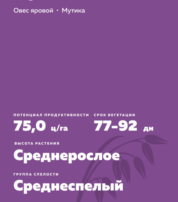 - Растение среднерослое. Устойчивость к полеганию на уровне стандартных сортов Улов и Скакун.