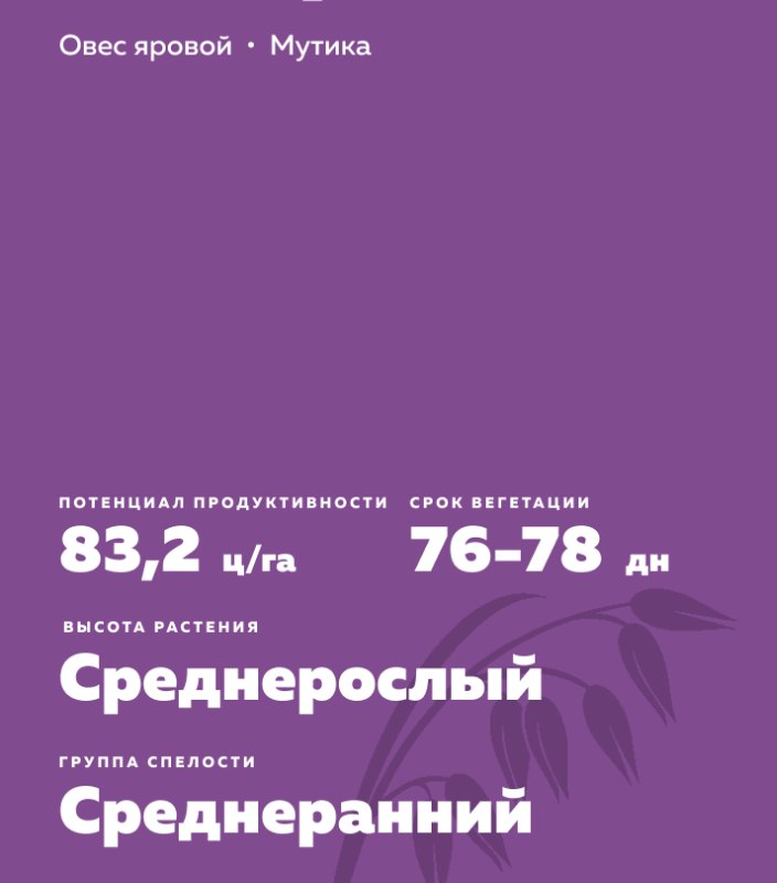 - Урожайность превысила уровень стандартного сорта в конкурсном сортоиспытании на 9,8 ц/га, максимальная составила 83,2 ц/га.