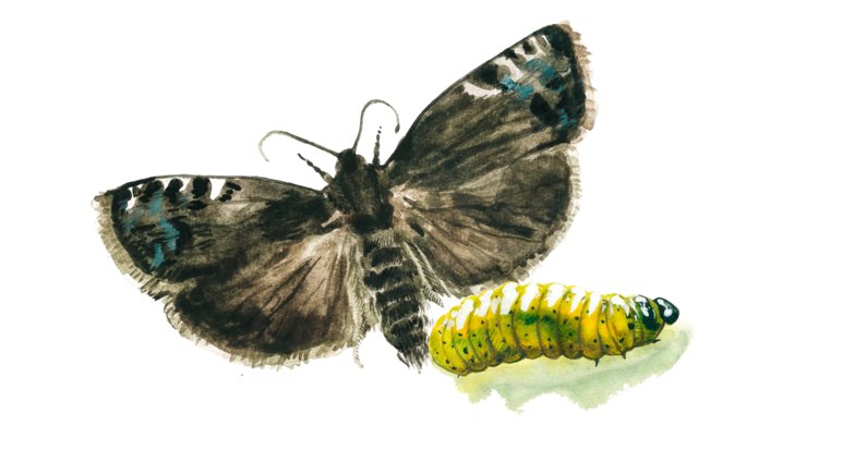 🔷 Вредит личинка. Поврежденные семена существенно теряют в весе, снижается их всхожесть на 30-40%. На горохе бабочки появляются при образовании первых бутонов. После спаривания через 4-7 дней с момента вылета из кокона они начинают откладывать яйца. При этом для насекомых желательно дополнительное питание на цветках гороха. Бабочки летают в вечернее время, откладывают яйца на бобовые растения.