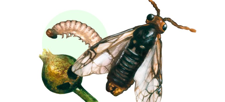 - Средняя плодовитость – 50-90 яиц. Яйца откладывают по одному в надрезы, сделанные яйцекладом на поверхности чашелистиков и цветоложа.