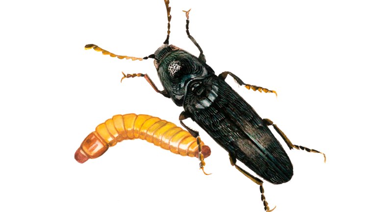 🔷 Личинки развиваются в почве и сильно вредят, поедая семена и всходы пшеницы, ржи, кукурузы и других зерновых. Часто развитие этого вредителя приводит к полной гибели посевов.