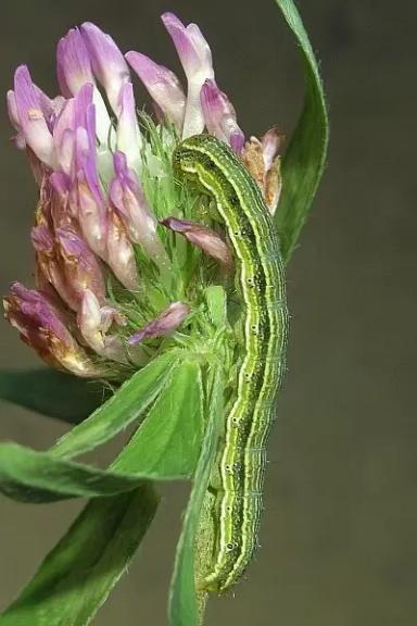 🔷 Молодые личинки скелетируют листья различных растений. Позднее объедают или продырявливают листовые пластинки по краю, уничтожают генеративные органы (бутоны, цветки, семена внутри бобов).