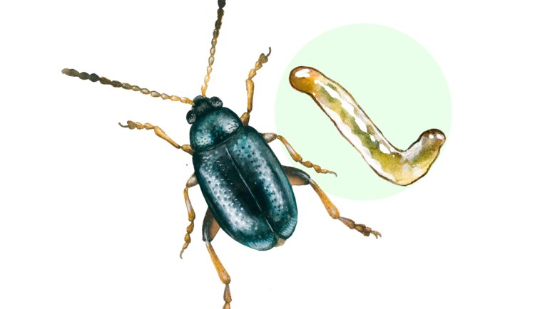 - Синяя льняная блошка (Aphthona euphorbiae). Ее жуки длиной 1,8- 2 мм, темно-синие, почти черные с бронзовым металлическим отливом.