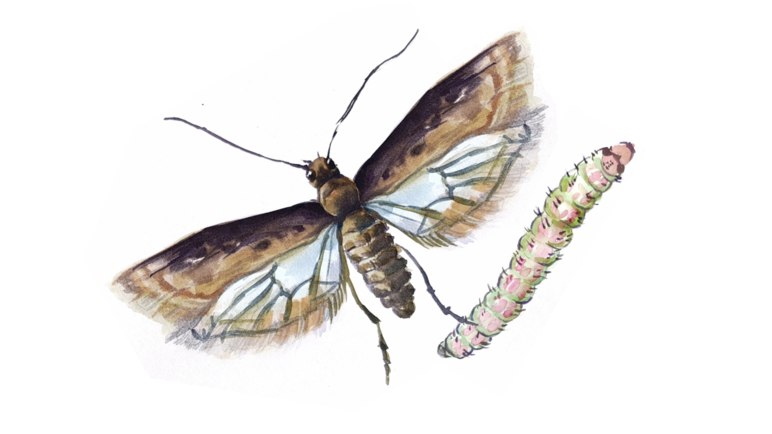 🔷 Гусеницы скелетируют листья. Весной и в начале лета они минируют листья, обычно вдоль главных жилок, а также протачивают ходыв черешках. Поврежденные листья скручиваются и чернеют. На месте центральной розетки образуется черный ком, состоящий из скрепленных шелковиной разложившихся листьев.