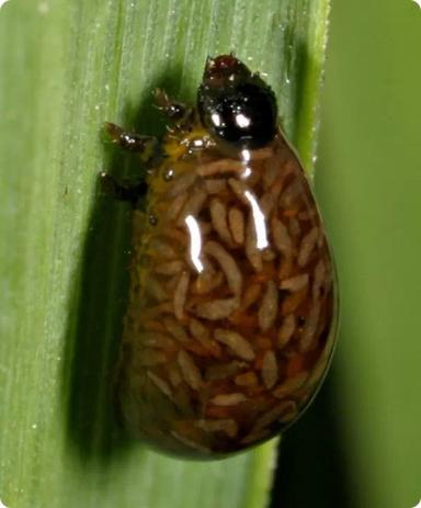🔹Вредоносны как имаго, так и личинки. Весной перезимовавшие имаго начинают питаться на зерновых (на озимых в фазы кущения - трубкования, на яровых - всходы - кущение), скелетируя листья, после чего спариваются и откладывают яйца.