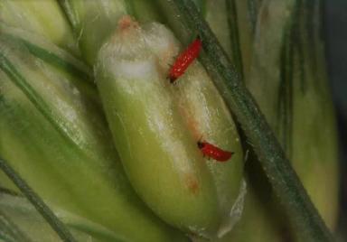 - Плодовитость самки колеблется в интервале от 13 до 29 яиц, откладка яиц происходит на внутренней стороне колосовых чешуек.