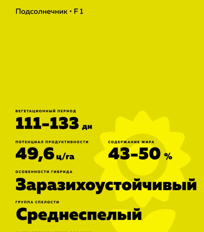 Helianthus annuus L.). Среднеспелый. Классический 7-ми расовый гибрид. Устойчив к осыпанию.