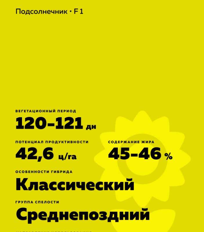 Helianthus annuus L.). Среднепоздний. Тип линолевый. Классический. Гибрид NORUST имеют высокую толерантность к ржавчине.