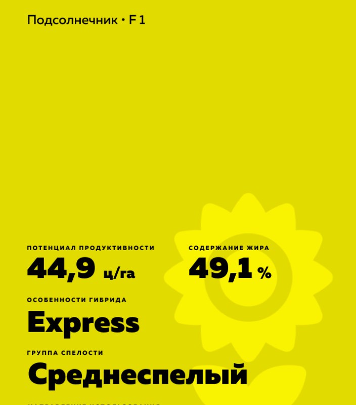Helianthus annuus L.). Среднеспелый простой гибрид.