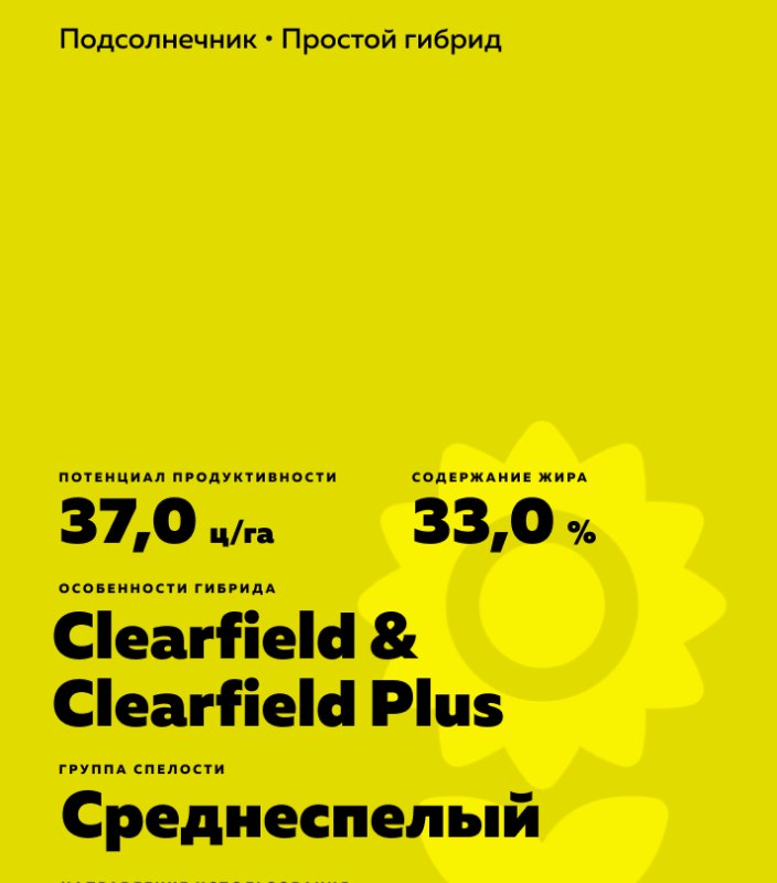 Helianthus annuus L.). Среднеспелый. Технология возделывания: Clearfield & Clearfield Plus.