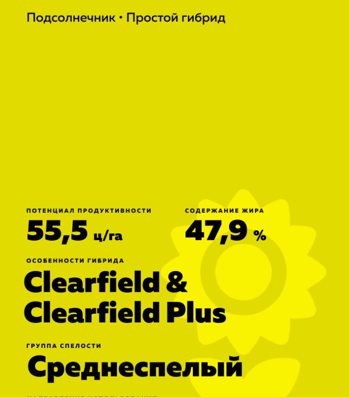 Helianthus annuus L.). Среднеспелый. Технология возделывания: Clearfield & Clearfield Plus.