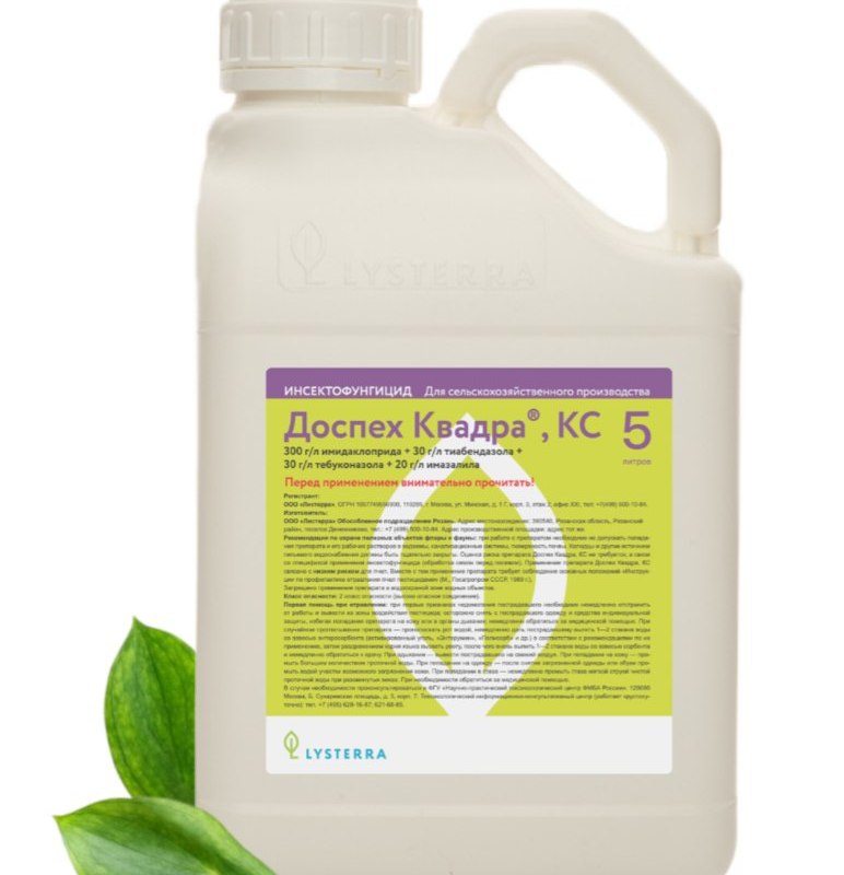 Механизм действия: инсектицид препарата блокирует передачу нервного импульса на уровне рецептора постсинаптической мембраны, а фунгициды — ингибируют превращение ланостерина в эргостерин, входящий в состав клеточных мембран грибов.
