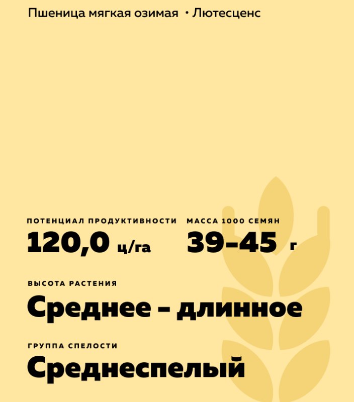 - Потенциал урожайности по данным оригинатора - 120 ц зерна с 1 га