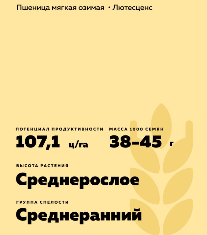 - Масса 1000 зёрен - 38-45 г.