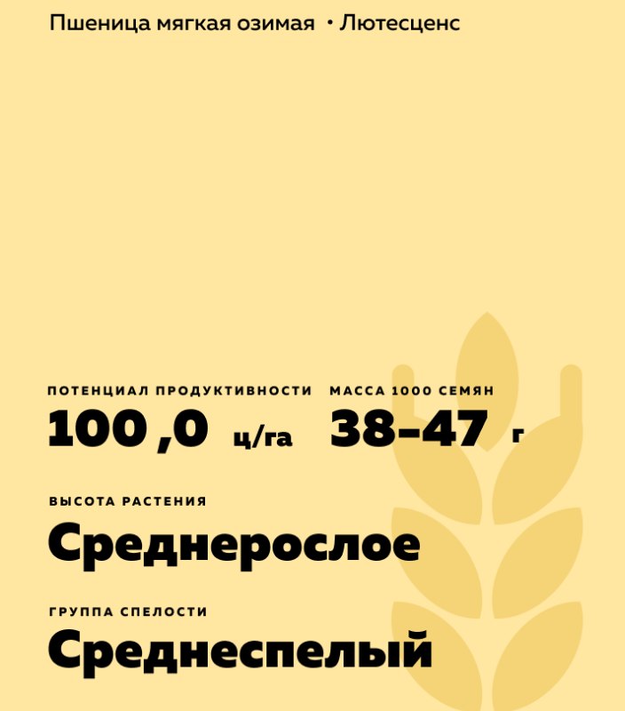 - Масса 1000 зёрен - 38-47 г. Устойчивость к осыпанию: высокая.