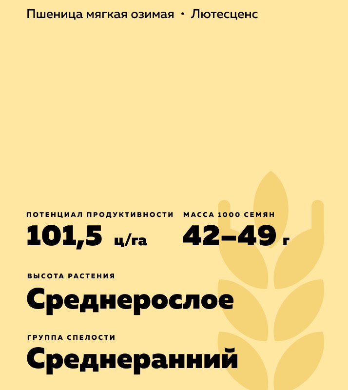 - Масса 1000 зёрен - 42-49 г.