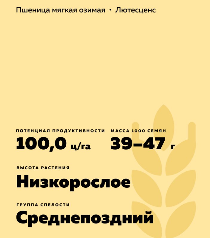 - Масса 1000 зёрен - 39-47 г. Устойчивость к осыпанию: высокая.