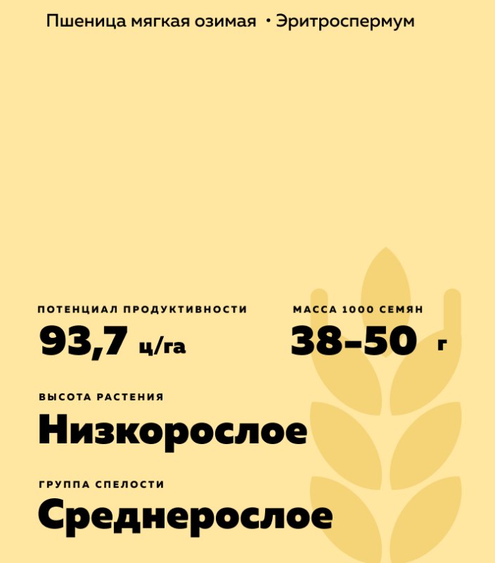 Triticum aestivum L.). Среднеранний, среднерослый, обладает устойчивостью к полеганию.