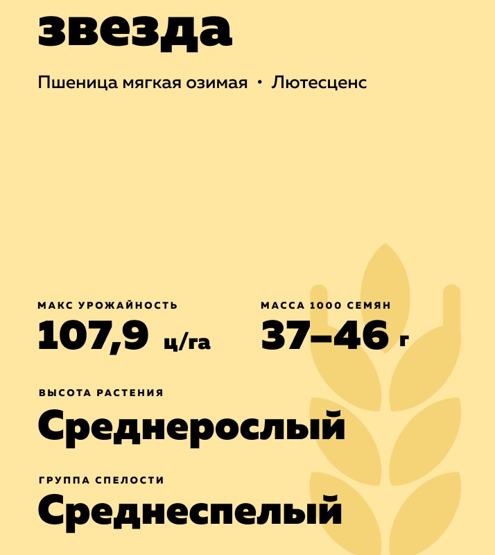 - Масса 1000 зёрен - 37-46 г.