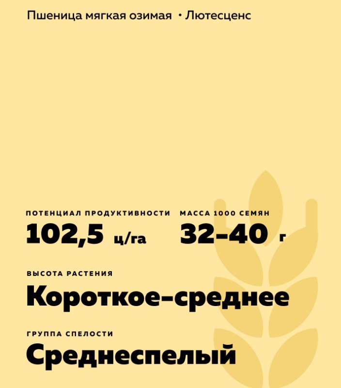 Triticum aestivum L.). Среднеспелый, низкорослый, обладает высокой устойчивостью к полеганию. Устойчив к бурой ржавчине и фузариозу колоса.