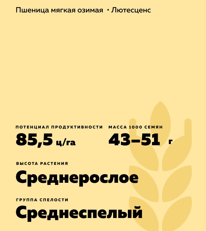 - Масса 1000 зерен 43-51 г. Высокоустойчив к прорастанию на корню.