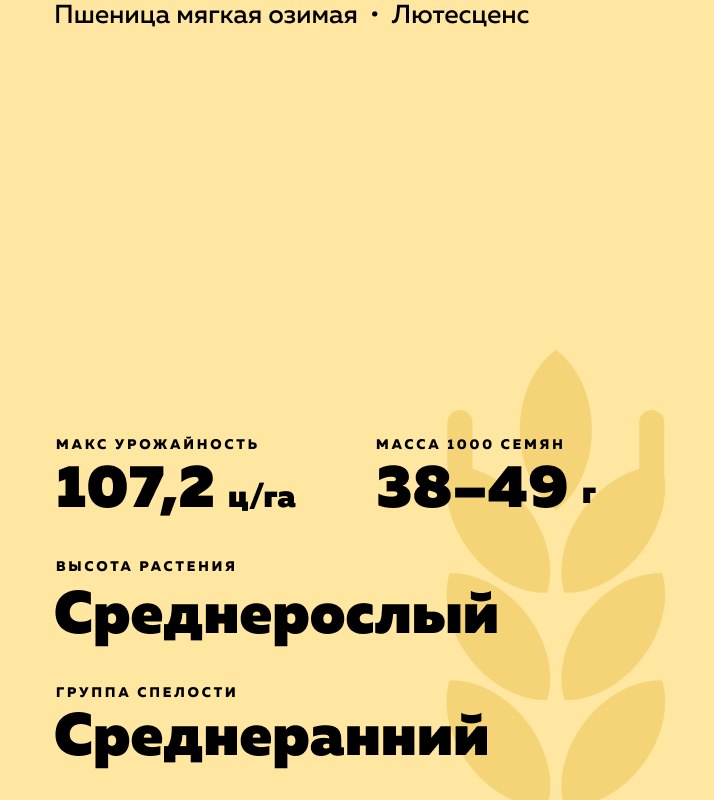 - Масса 1000 зёрен - 38-49 г.