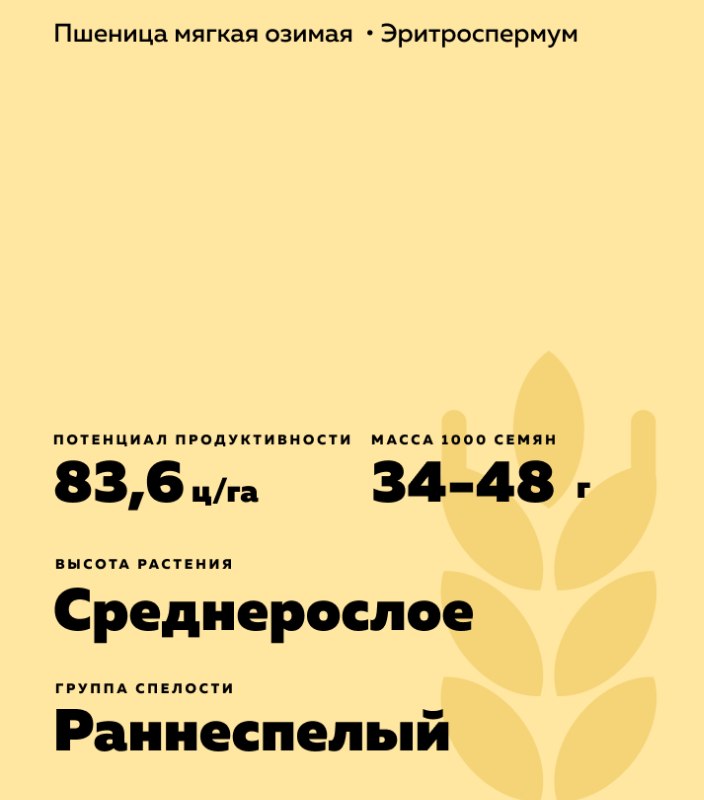 Triticum aestivum L.). Раннеспелый. Устойчив к полеганию, осыпанию и прорастанию зерна на корню.
