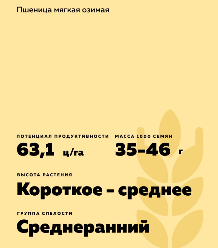 - Растение короткое - средней длины. Высота растений 61-86 см. Устойчив к полеганию.