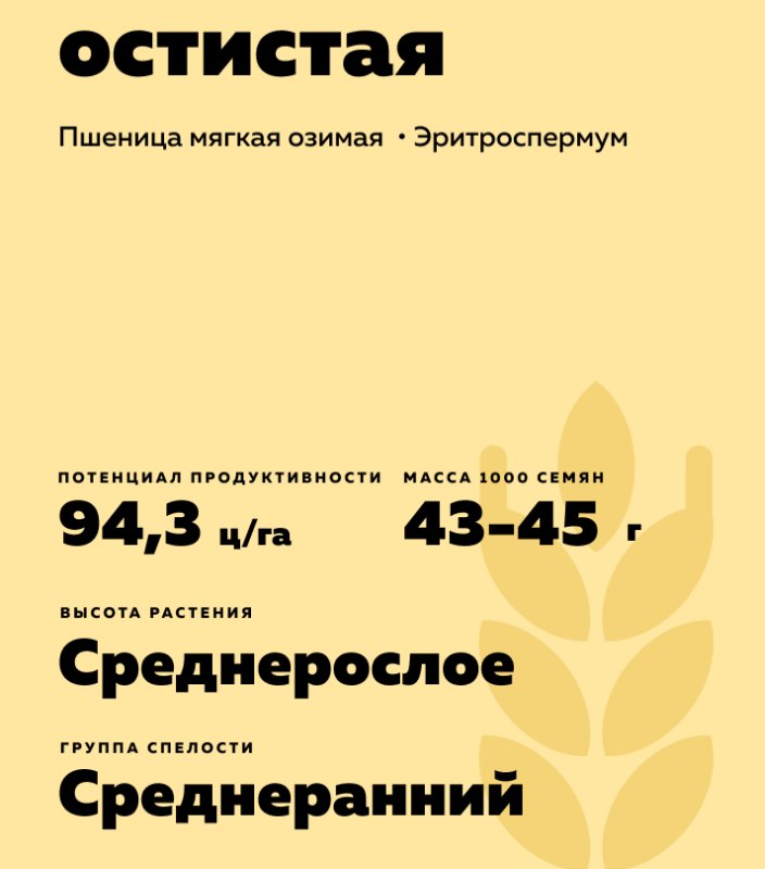 Triticum aestivum L.). Среднеранний высокопластичный сорт сильной пшеницы для среднего и ниже среднего агрофона. Высокая жарозасухоустойчивость.