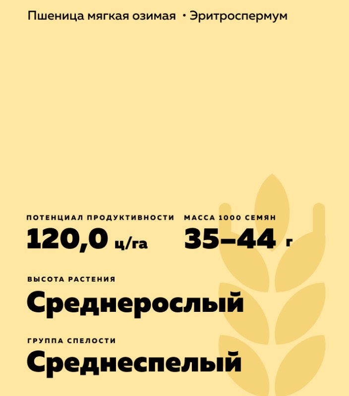 Triticum aestivum L.). Среднеспелый, среднерослый, интенсивный, с повышенной адаптивностью, морозо-зимостойкость высокие, обладает высокой устойчивостью к полеганию.