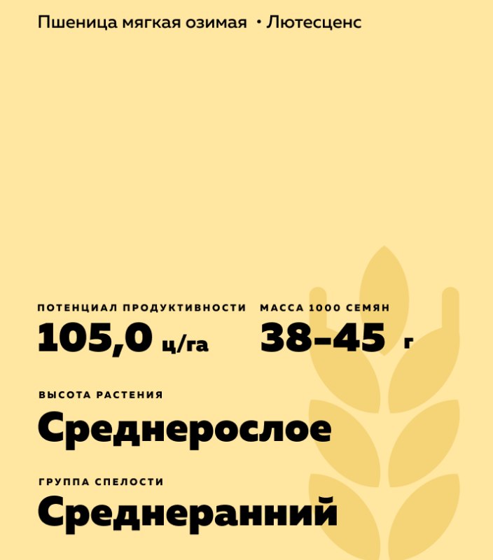 - Предназначен для выращивания на высоком и среднем агрофоне.
