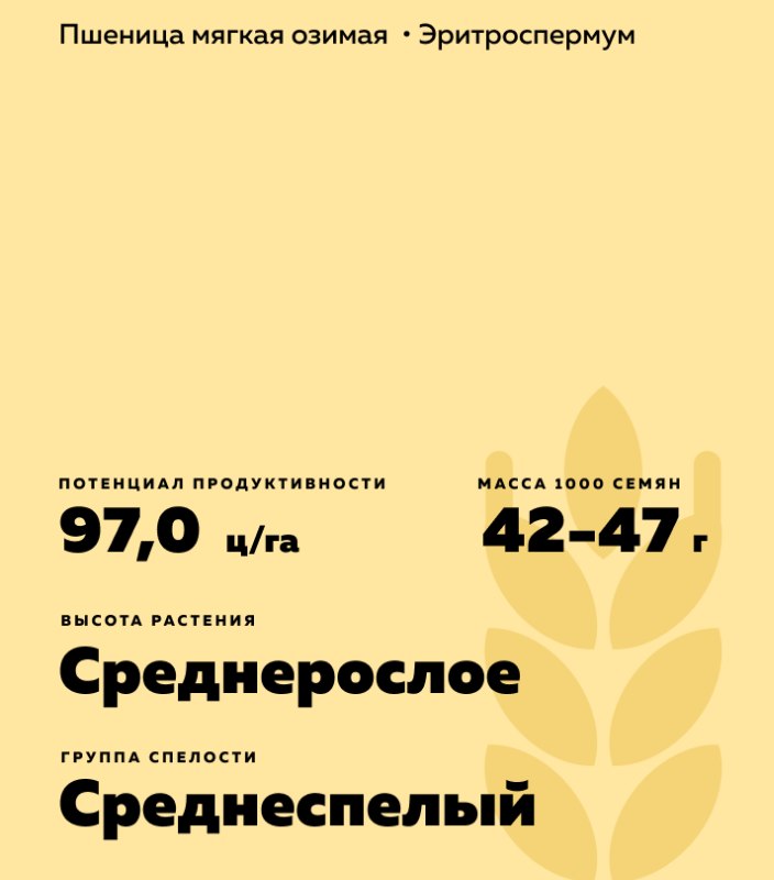 Triticum aestivum L.). Среднеспелый, среднерослый, устойчив к полеганию.