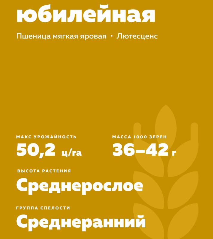 Омская юбилейная ® - сорт мягкой яровой пшеницы (Triticum aestivum L.). Среднеранний, продуктивный, устойчив к полеганию.