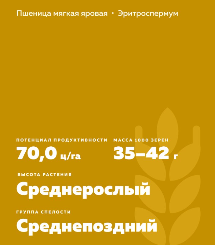 Triticum aestivum L.). Среднепоздний, среднерослый. Очень засухоустойчив. Полностью устойчив к стеблевой ржавчине, умеренно устойчив к бурой ржавчине.
