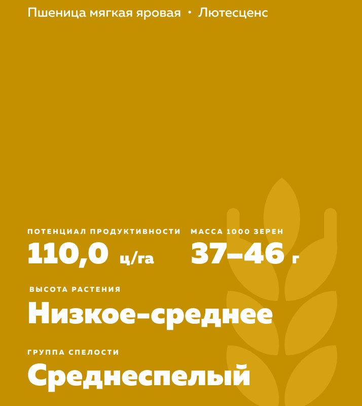 - Масса 1000 зёрен - 37-46 г.