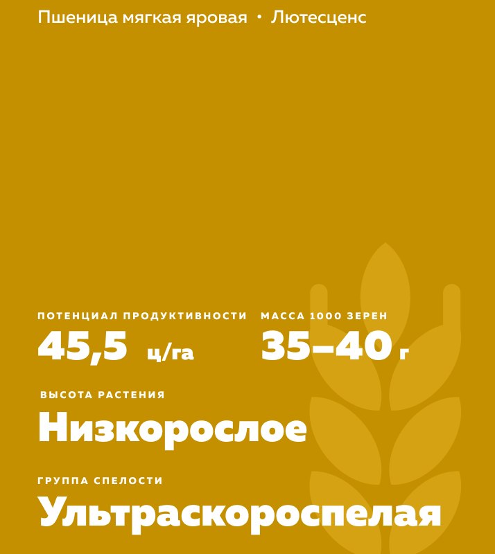 - Масса 1000 зерен 35-40 г.