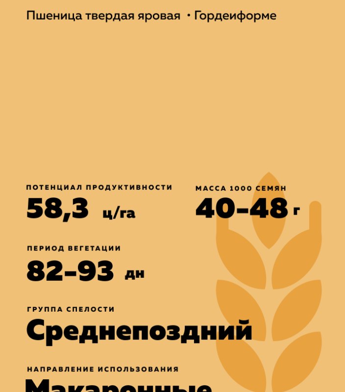 АТП Прима ® - сорт пшеницы твердой яровой (Triticum durum Desf.). Среднепоздний. Макаронные качества хорошие и отличные.