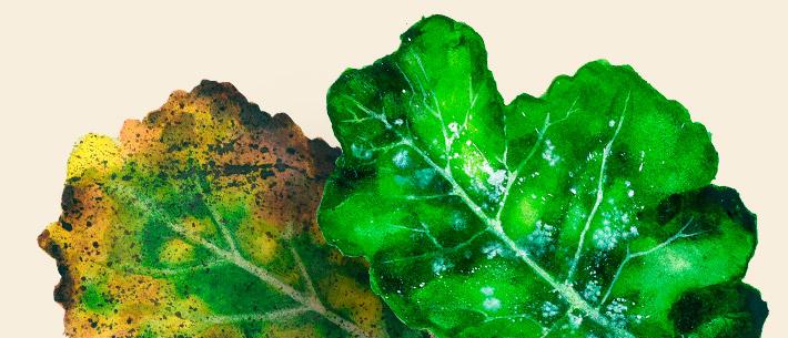Мучнистая роса рапса во всех регионах возделывания культуры. Симптомы болезни весьма специфичны, поэтому, она легко диагностируется в поле. Потерявшие тургор и ослабленные засухой растения рапса легко заражаются мучнистой росой.