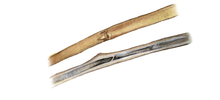 🟡Во влажную погоду в нижней части пораженного стебля наблюдается розовый мицелий возбудителя.