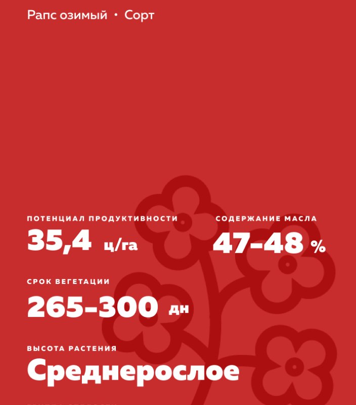 | Масса 1000 семян | 3.8-4.9 грамм |